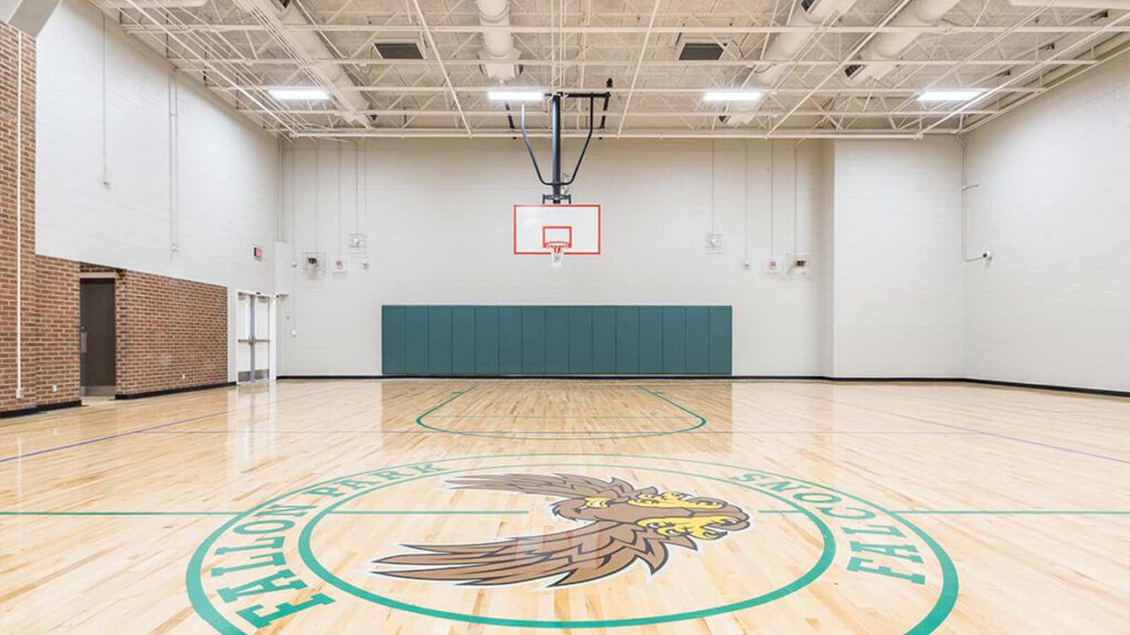 Project built in 3 phases. The new school was built around the existing school. Once the new building was finished, they demolished most of the old school and connected the gymnasium to the new.